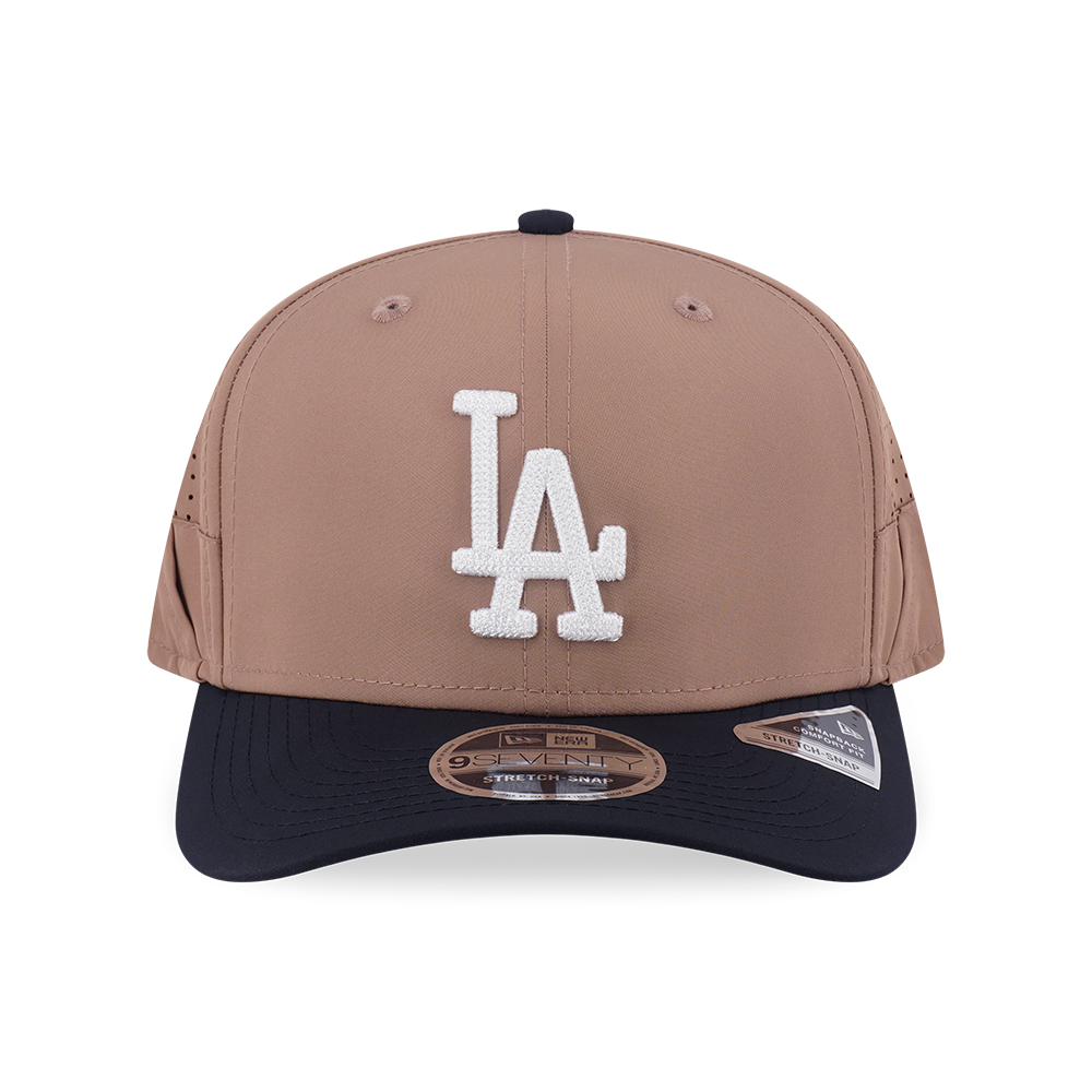 LOS ANGELES DODGERS SUNGLASSES-HOLDER 2-TONE BLACK VISOR KHAKI 9SEVENTY STRETCH SNAP CAP