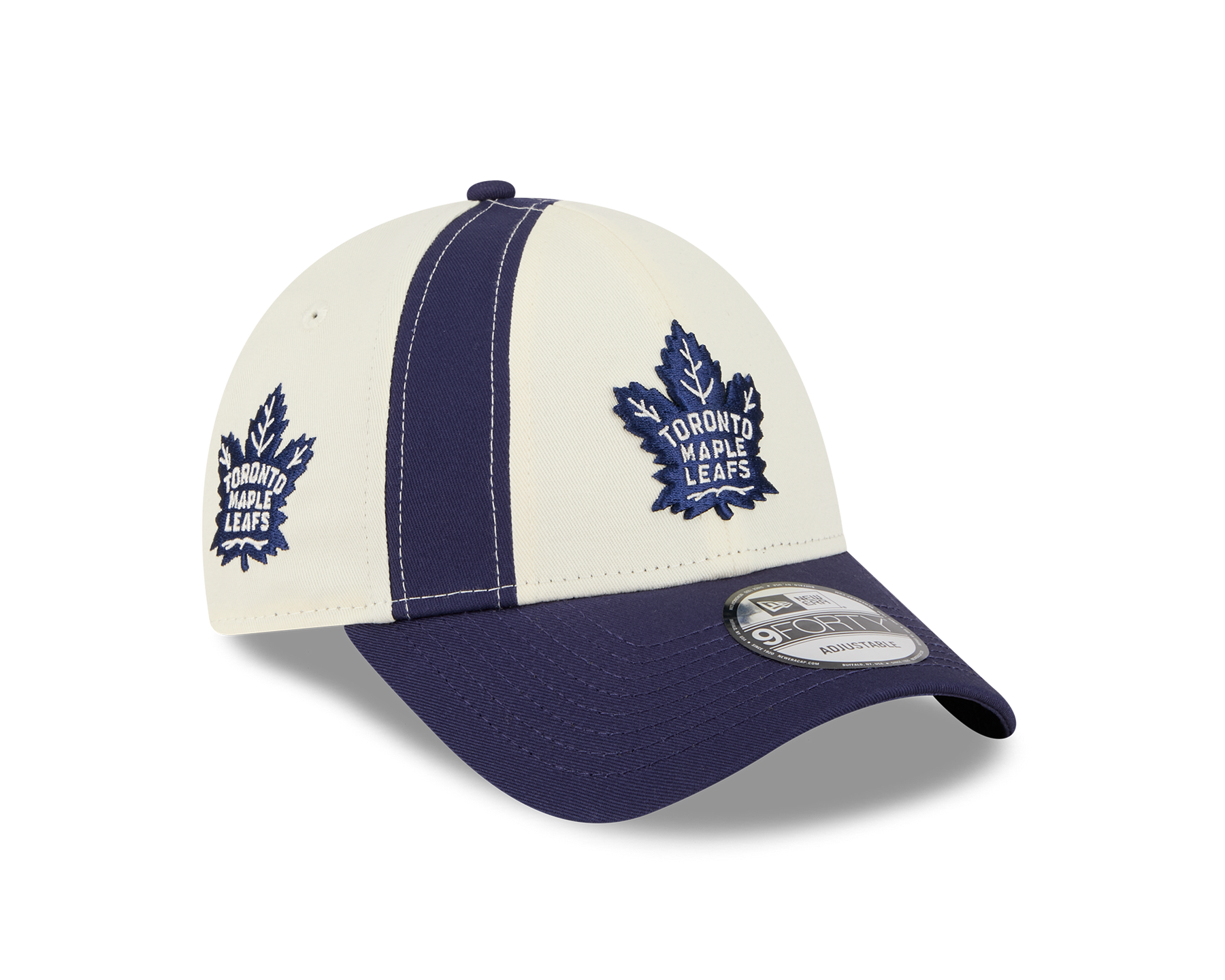- Rendered in the colorway of Chrome White and Light Navy, the design features a Leafs emblem at the front, their side patch to the wearer’s right and our iconic flag logo to the left.