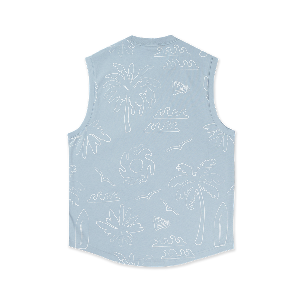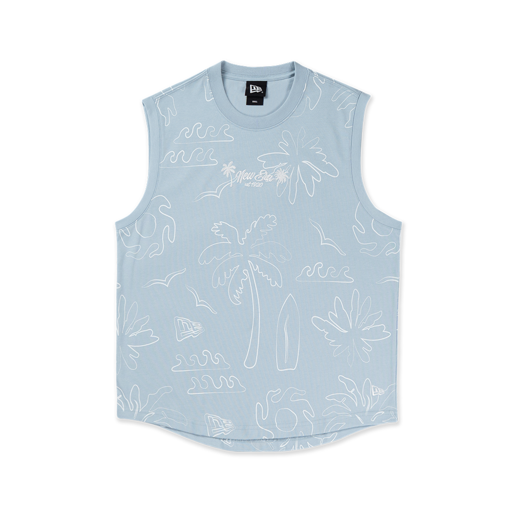 - Rendered in an all-over tropical print, the design features embroideries of our branded wordmark and palm tree graphics on the chest.