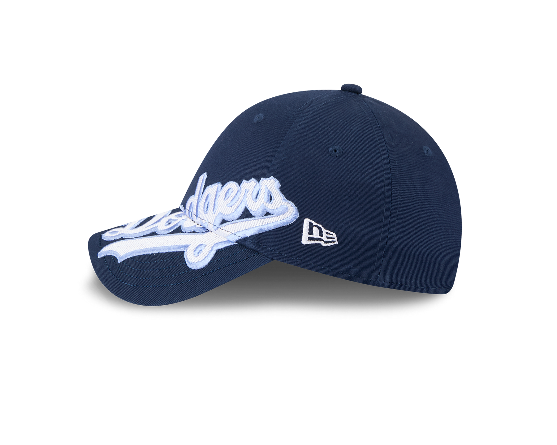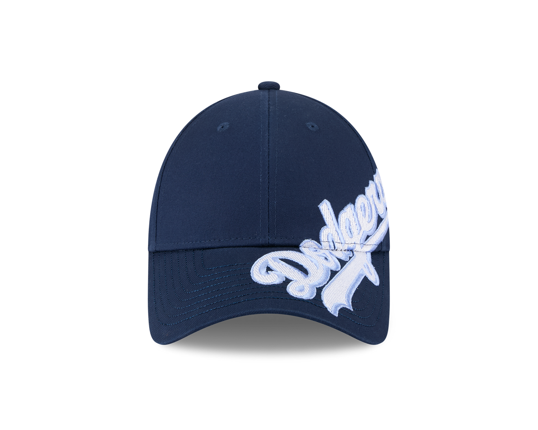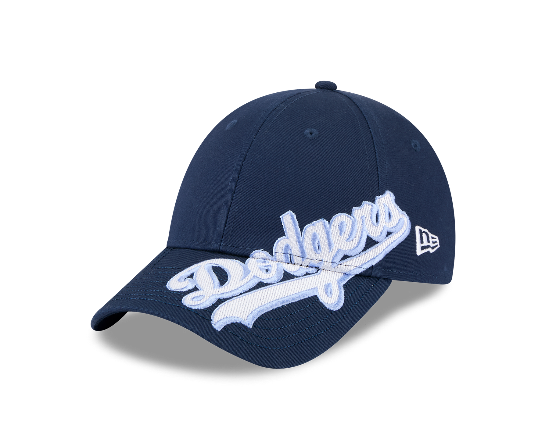 - Rendered in Oceanside Blue, the design features a Dodgers wordmark embroidered across the top visor and front panels, making it pop against the 9FORTY crown.