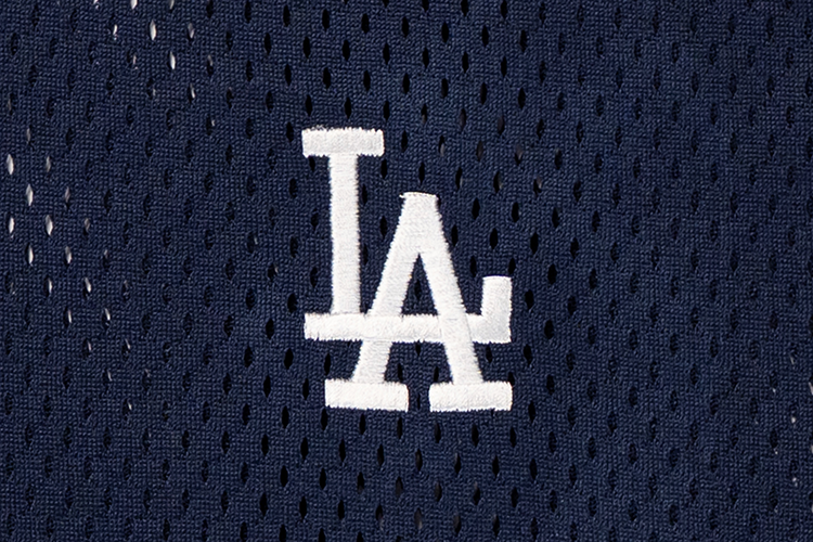 - Rendered in Oceanside Blue, the mesh tee features a Dodgers wordmark printed across the front and rear bottom.