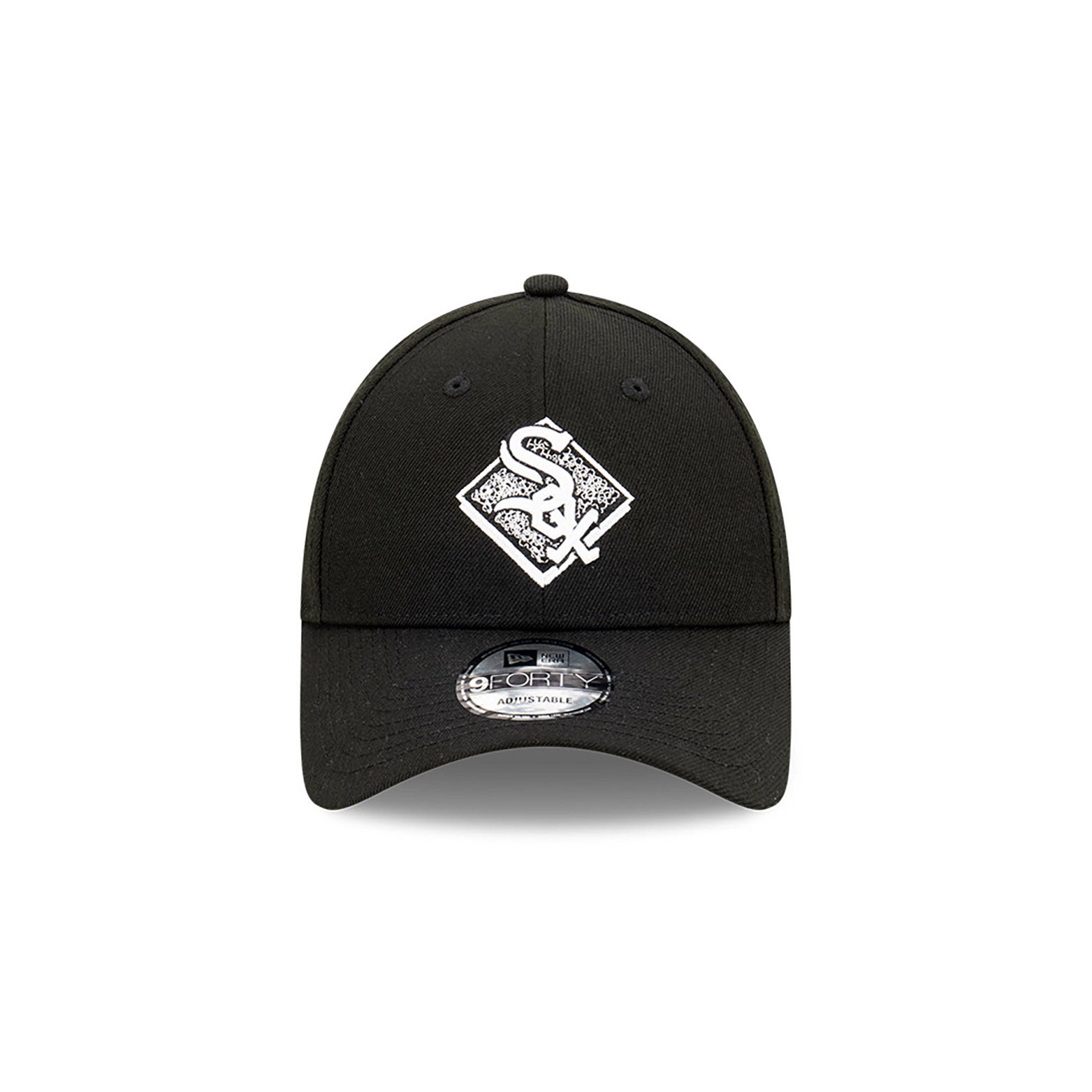 - 帽冠前方繡有芝加哥白襪隊隊標,隊標綴以鑽石圖案。