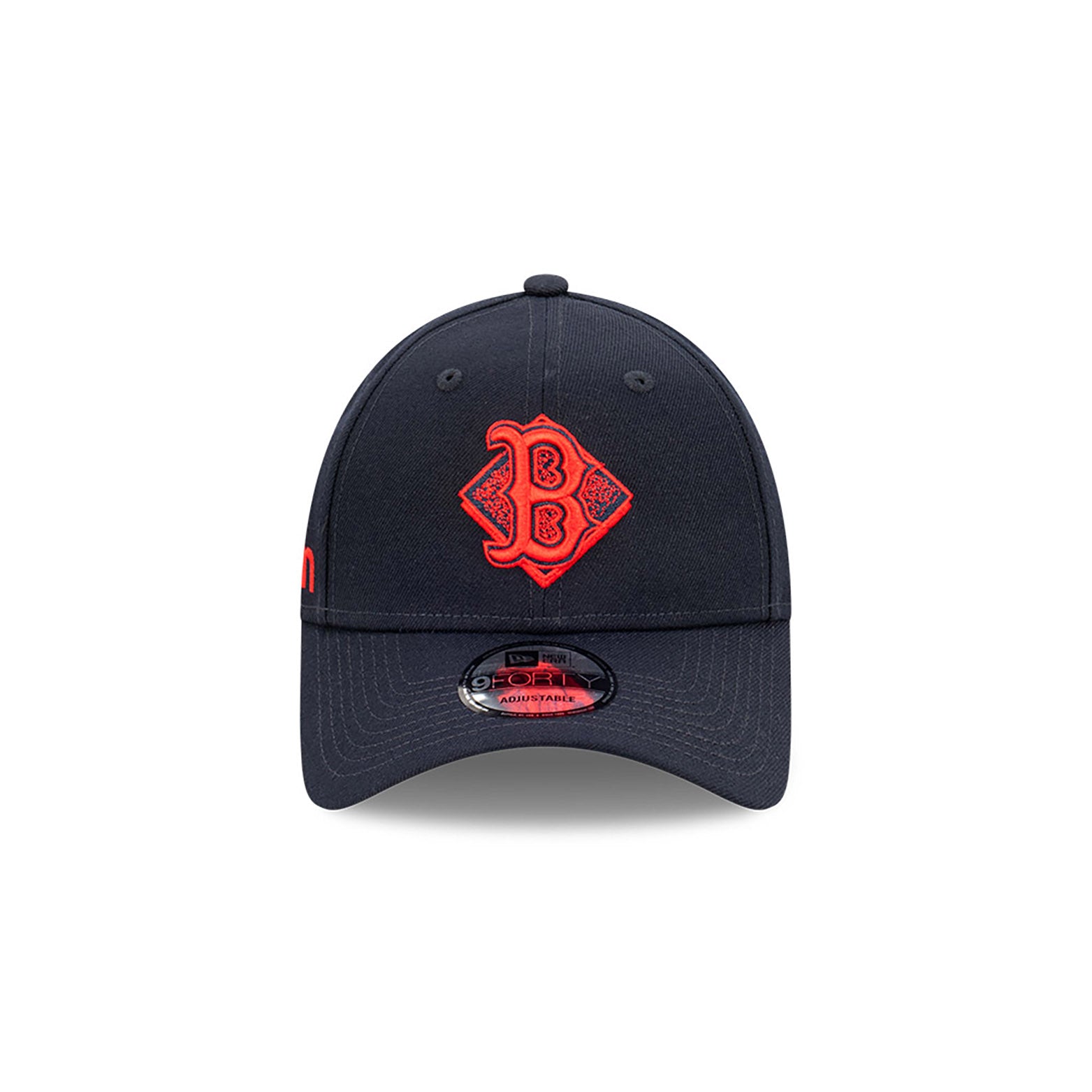 - 帽冠前方繡有波士頓紅襪隊隊標,隊標綴以鑽石圖案。