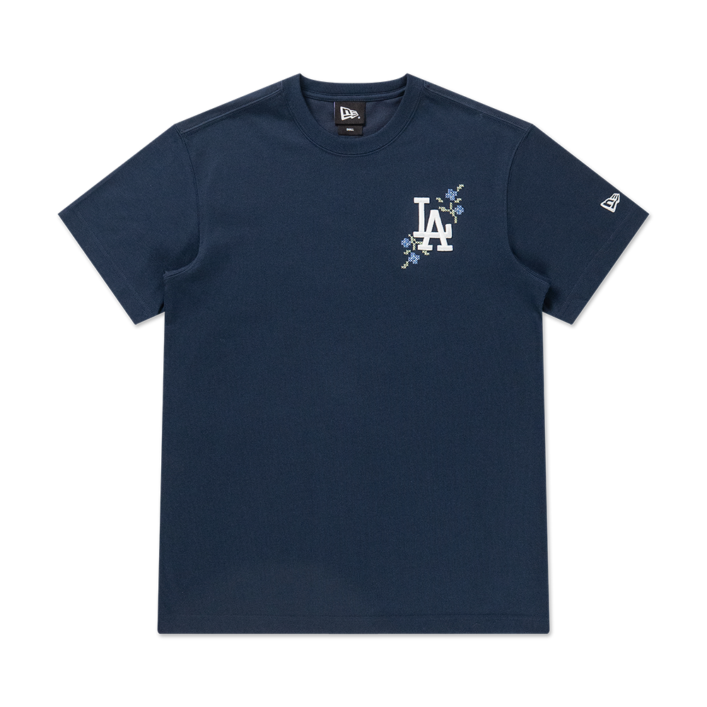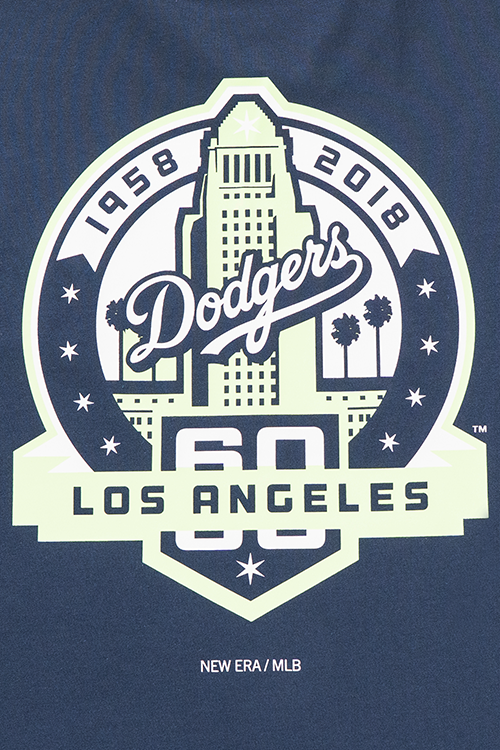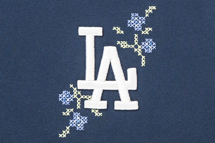 - 左胸上印有洛杉磯道奇隊隊標,隊標綴以像素花圖案。