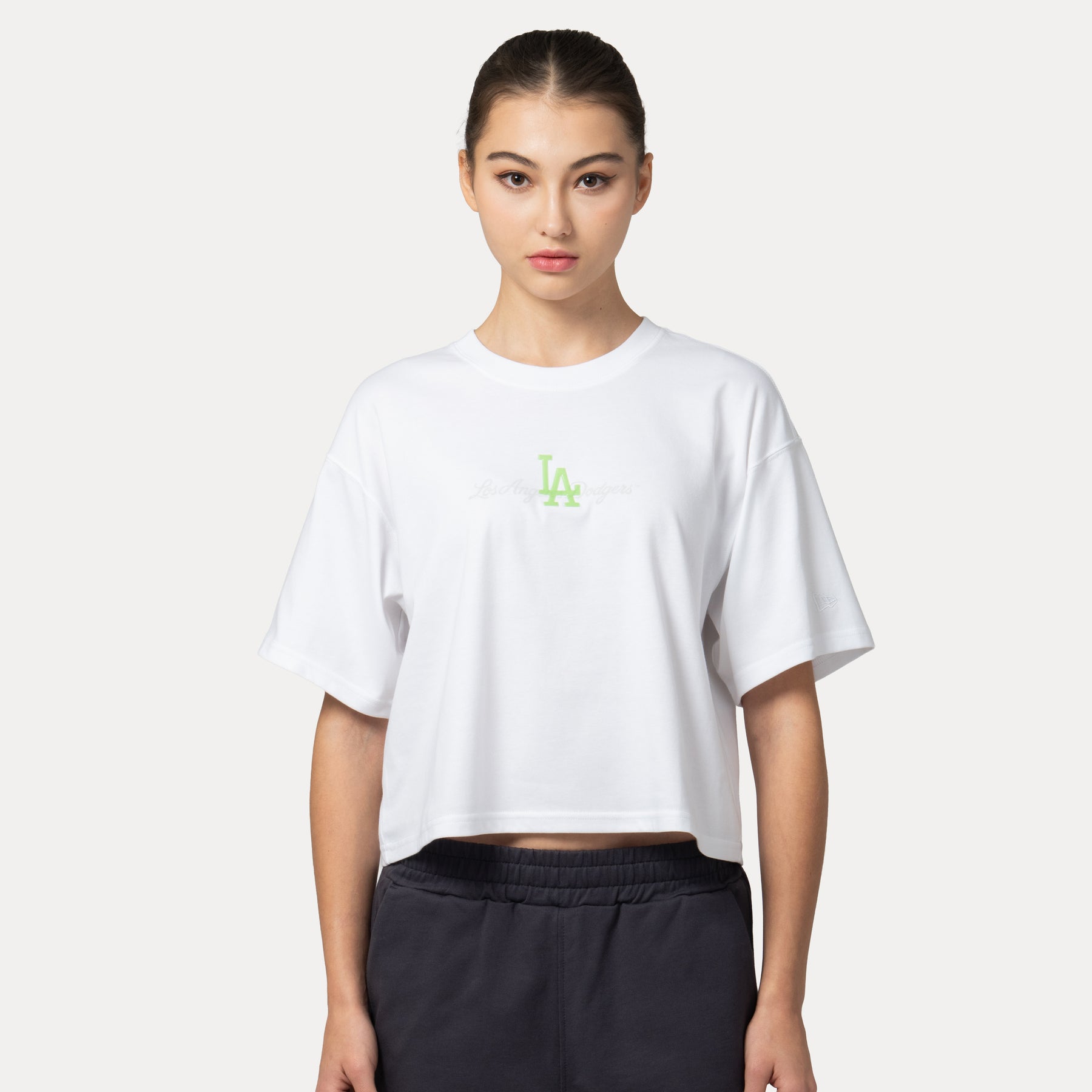 - 寬鬆版型T裇綴以立體的洛杉磯道奇隊隊標及字標,標誌帶果凍質感。