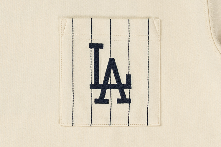 - 左胸綴以間條口袋,口袋上繡有洛杉磯道奇隊隊標。